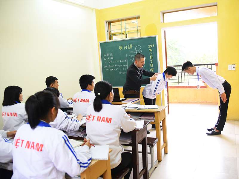 Giáo viên người Nhật tận tâm dạy tiếng cho các bạn thực tập sinh để các bạn đạt được trình độ tiếng Nhật cao nhất trước khi xuất cảnh
